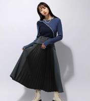 罗纹上衣也是冬季很好的穿搭选择,可以尝试拼接、比较有造型感的,下身搭配高腰长百褶裙,A字型的设计更加显瘦,也让腿的比例看起来更长唷~